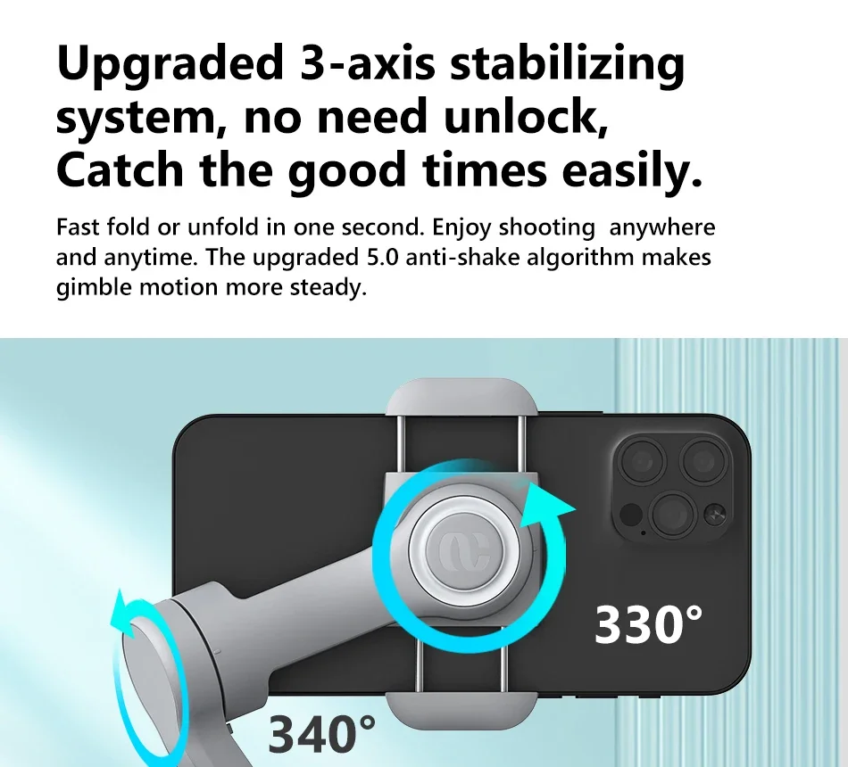 3-Axis Foldable Smartphone Gimbal Stabilizer with Wireless Charging for smart Phones