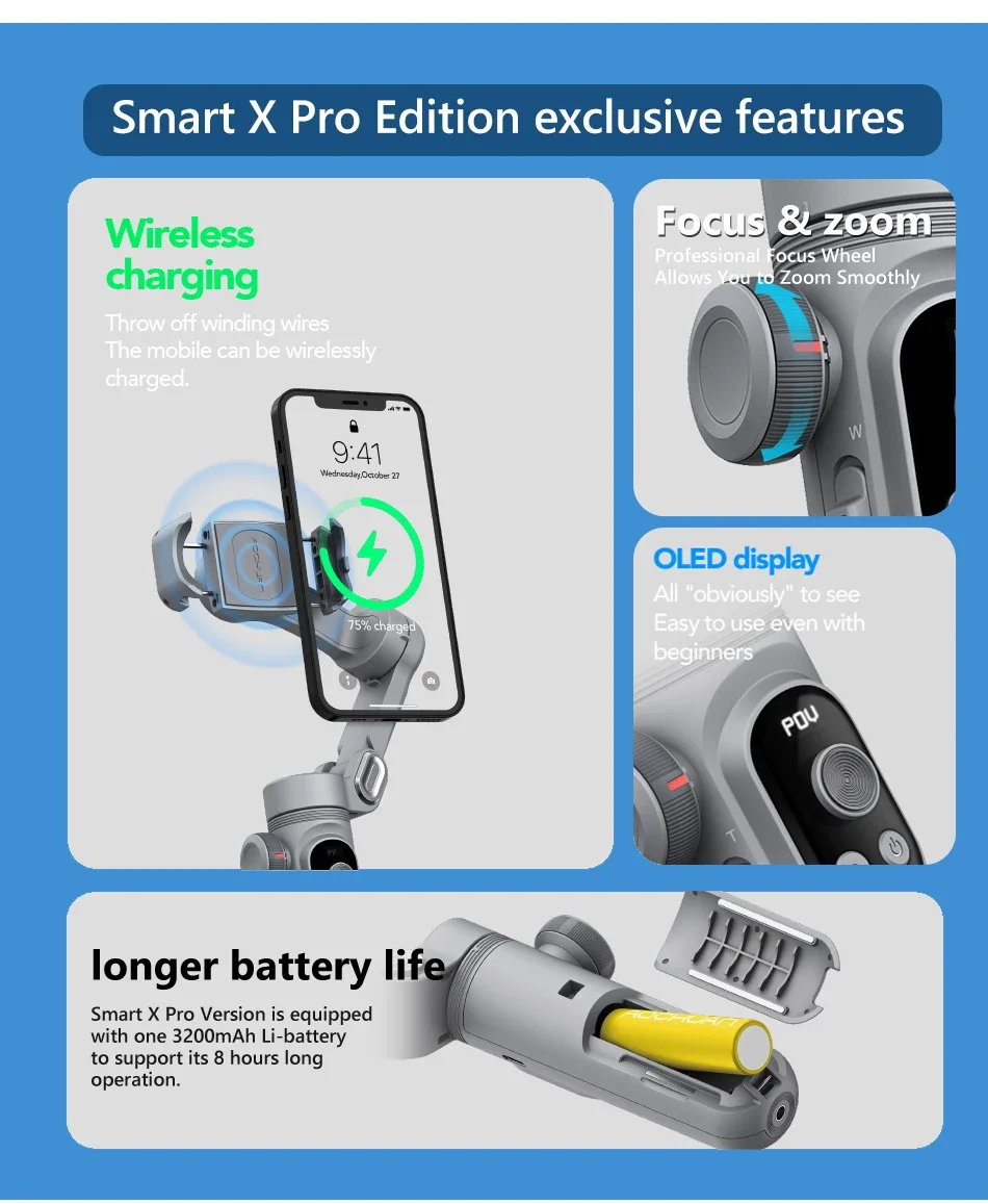 Smart X PRO gimbal is the Upgraded version of Smart X gimbal.