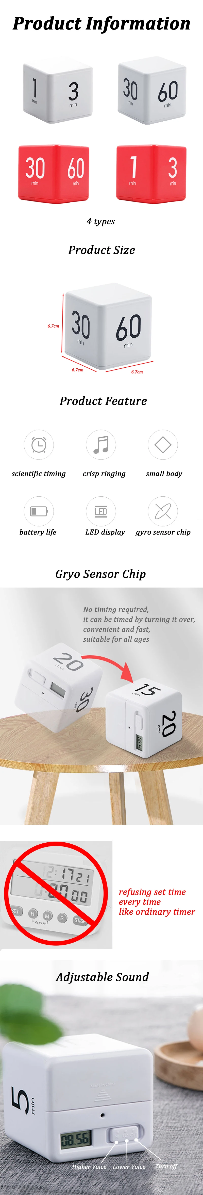 Cube LED Timer for Cooking Shower Study Alarm Clock Magnetic Electronic Countdown Time Square Home Kitchen Living Room Square