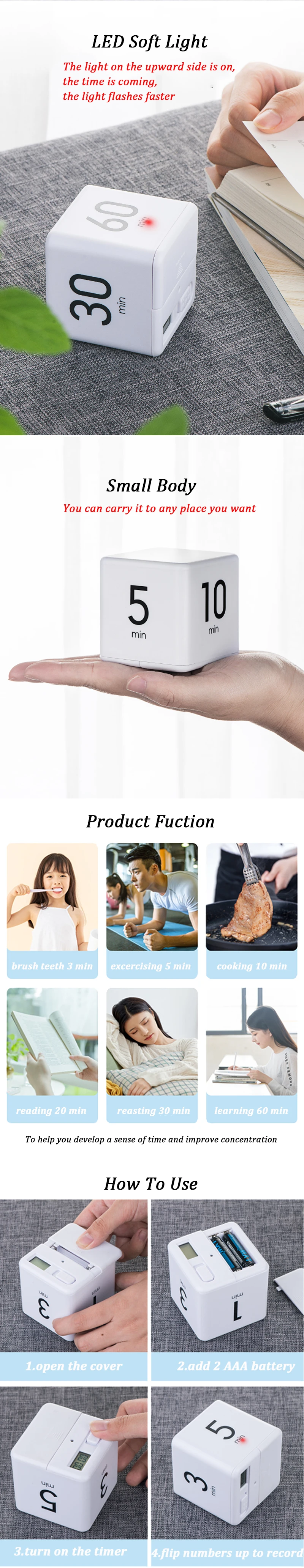 The product can be timed 1 minutes, 3 minutes, 5 minutes,10 minutes, 15 minutes, 20minutes, 30 minutes, 60 minutes, and the time period will be face up, the product can start automatic timing.