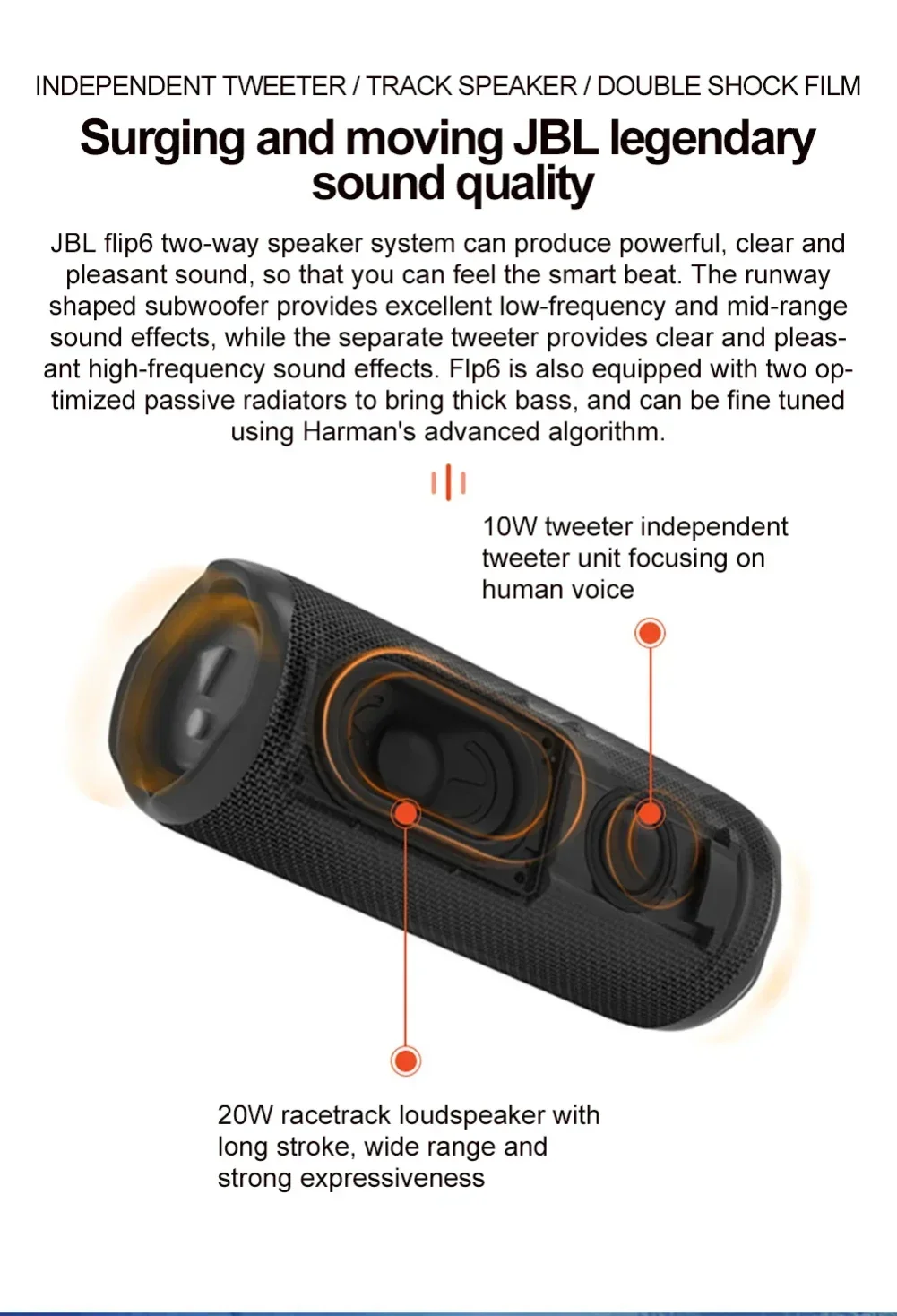3【Bold Design】Bold audio with bold design. Loud and portable, it’s designed to fit any personal style.