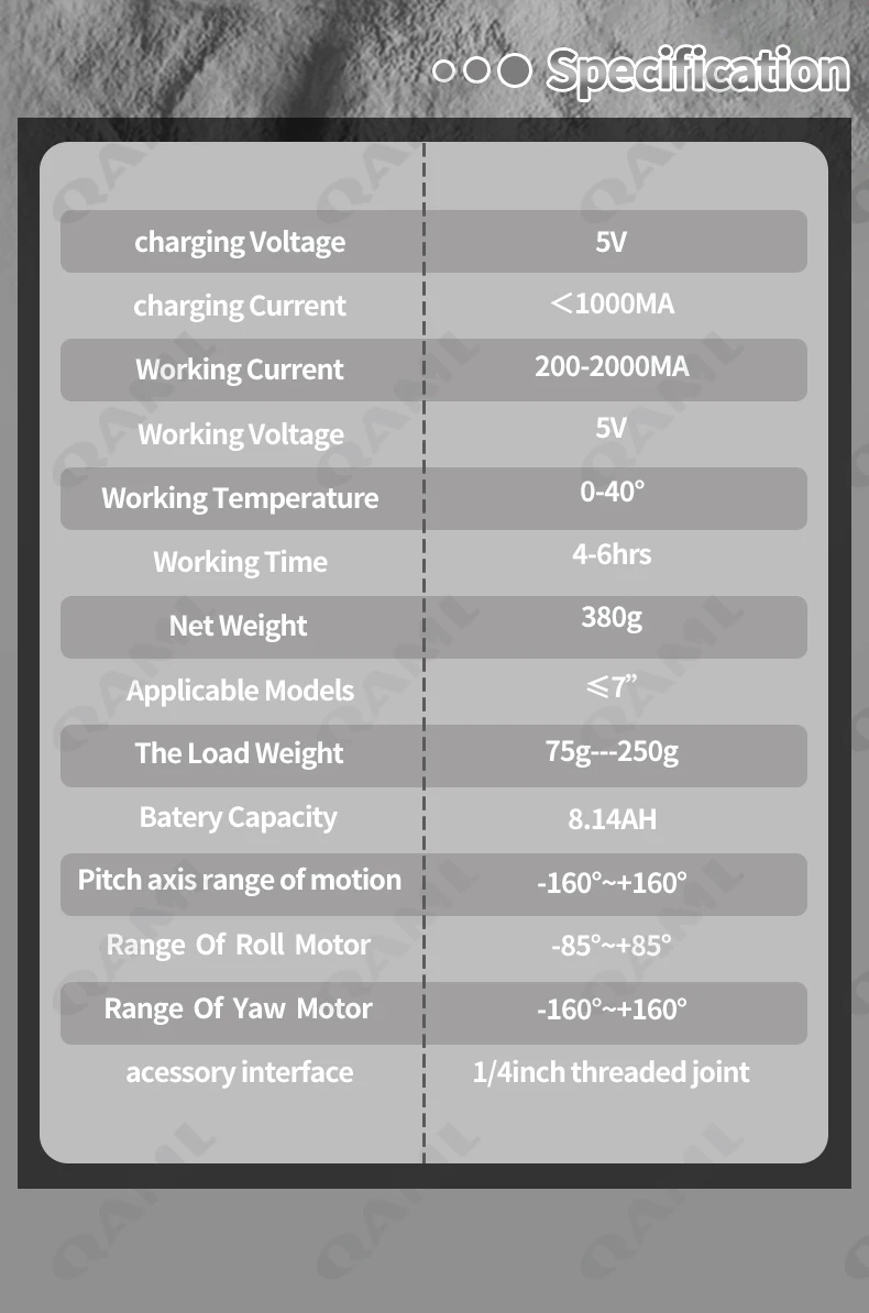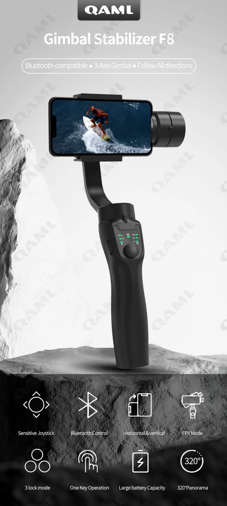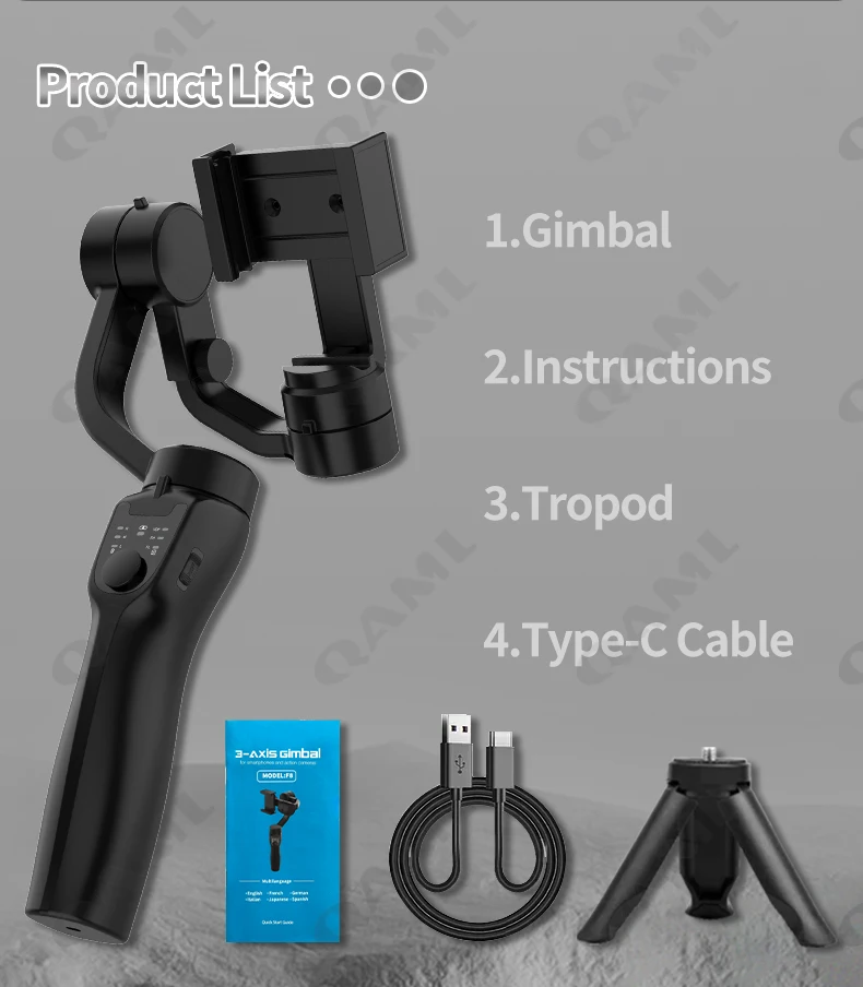 • 3-Axis Gimbal :The QAML F8 Handheld Gimbal features a 3-Axis design, ensuring stable and smooth video recording, reducing camera shake, and enhancing the quality of your videos.